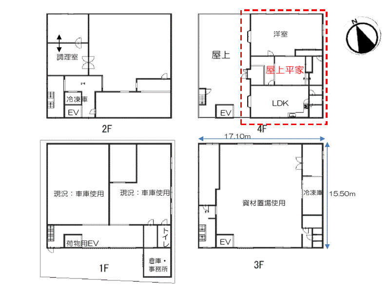 | 構造/階数 | 鉄骨造/4階建ての1~4階部分 |
